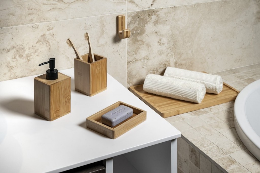 Moderní design a přírodní materiál - to je kolekce koupelnových doplňků BAMBOOM od italského výrobce Gedy. S touto řadou doplňků docílíte podmanivého kouzla ve své koupelně.