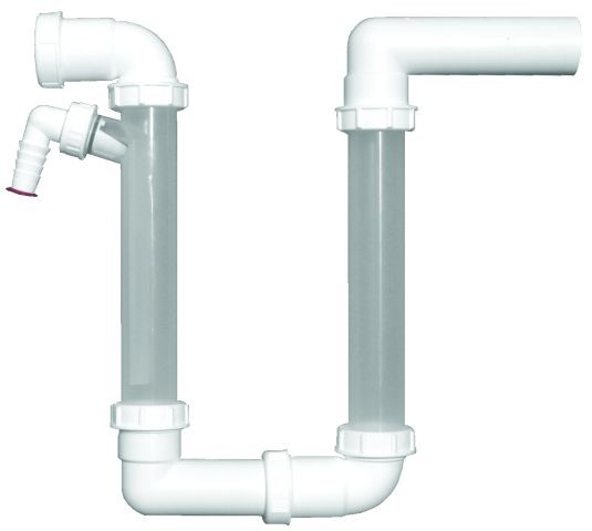 Kondenzační sifon DN40 s transparentními zásuvnými trubicemi pro kontrolu stavu vodní hladiny, s možností dopouštění vody