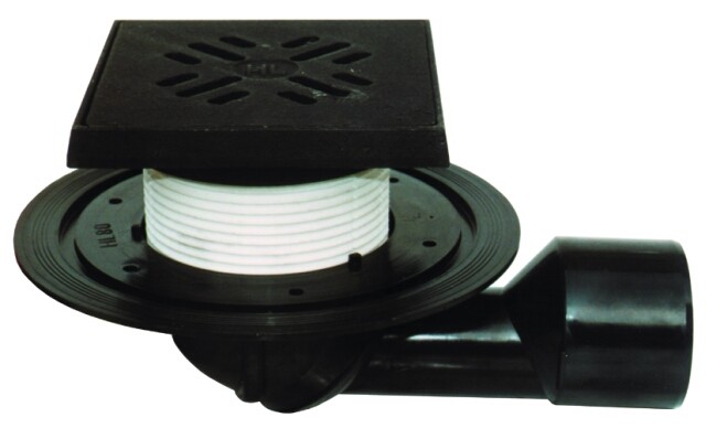 Podlahová vpust DN50/75 s otočným kloubem na odtoku, odtok s plynule nastavitelným sklonem od 0 - 90° (kulový kloub), s izolačním límcem, se zápachovou uzávěrkou (výška vodního uzávěru 50mm), s plastovým výškově stavitelným nástavcem 34 - 73mm, rámečkem 150x150mm a mřížkou z litiny 137x137mm. Stavební kryt v balení