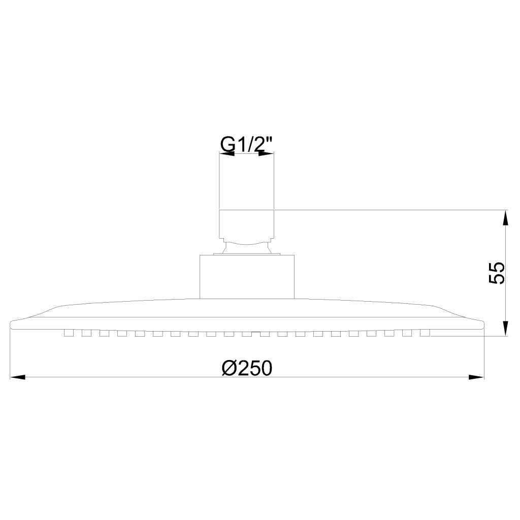 Kulatá dešťová sprcha o průměru 25 cm.