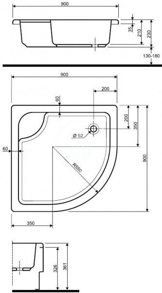 - odtok o průměru 52 mm