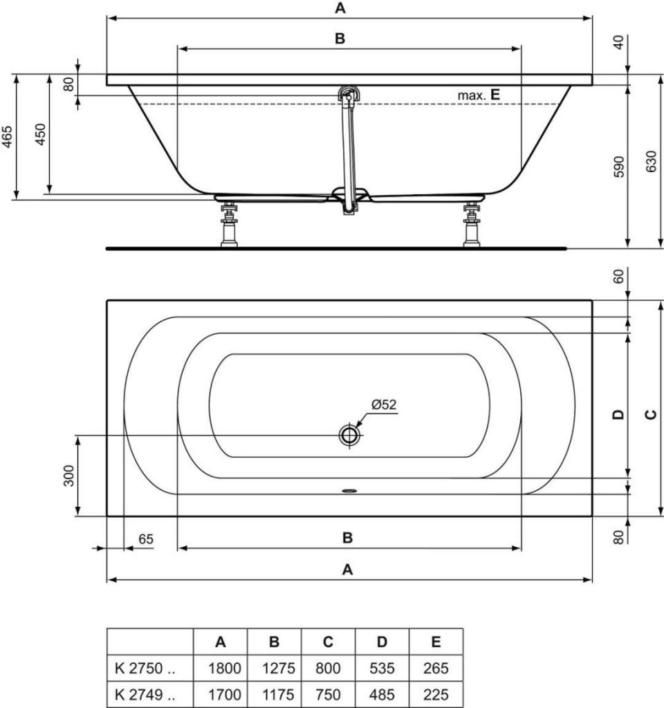 Nohy k vaně a odtoková souprava nejsou součástí dodávky.