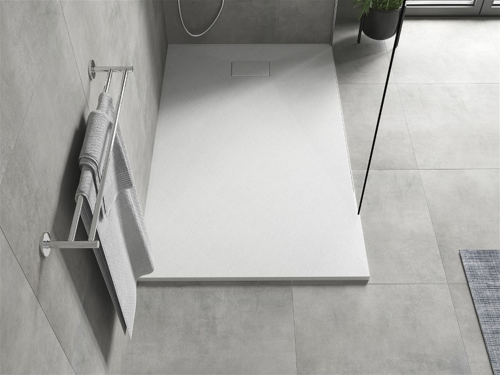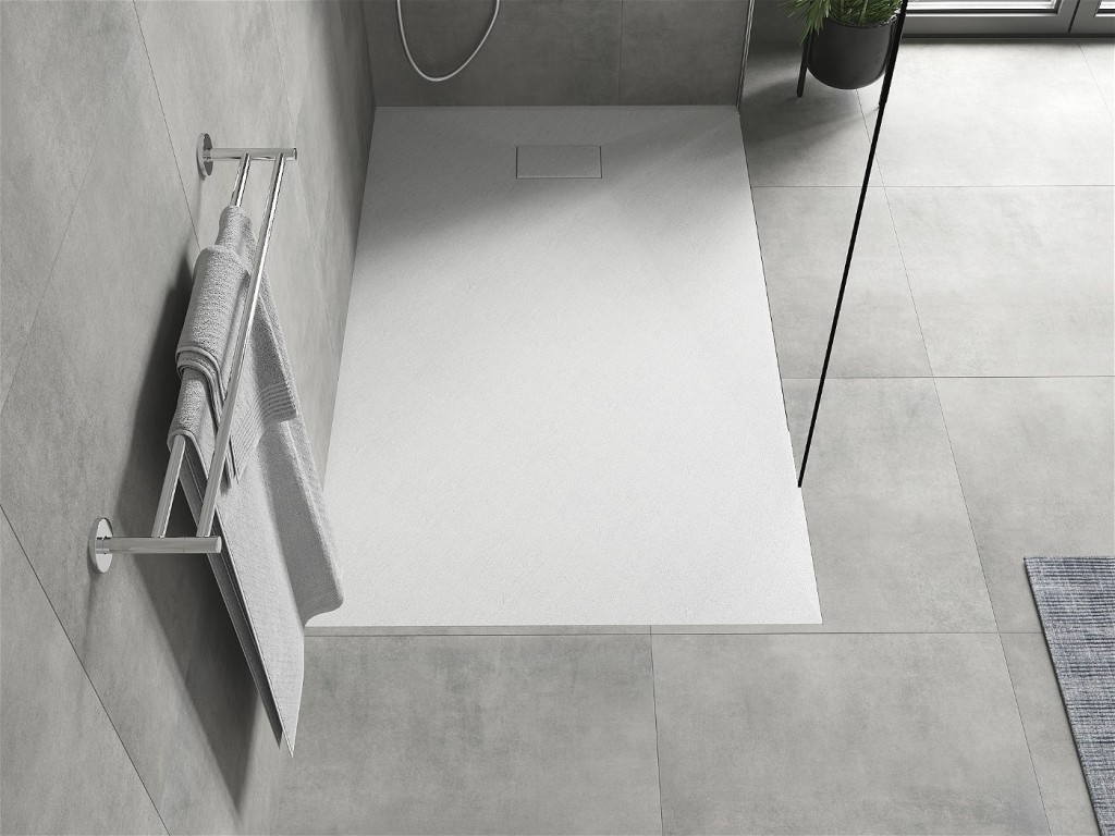 Nabízená sprchová, obdélníková, ultratenká vanička HUGO je harmonií kvality, funkčnosti a estetiky. Sprchovou vaničku lze položit na podlahu, zapustit do podlahy a pokud je to nutné i libovolně řezat. Sprchová vanička je vyrobena z kompozitního materiálu SMC, který je mimořádně odolný proti vlhkosti, mechanickému poškození a čisticím prostředkům, což se promítá do mimořádné odolnosti, lehkosti a elegance výrobku. Kompozitní povlak SMC, který imituje kámen, díky svým vlastnostem nereaguje na změny teplot, takže použití je příjemné. Nízkoprofilový design Zajišťuje pohodlné a bezpečné sprchování a zároveň vytváří elegantní vzhled koupelny. Nízký profil sprchové vaničky dokonale zapadá do moderních designových trendů a umožňuje instalaci v rovině s podlahou, čímž eliminuje jakékoli překážky při každodenním používání sprchy. Toto řešení zaručuje nejen pohodlí, ale také snadné čištění.