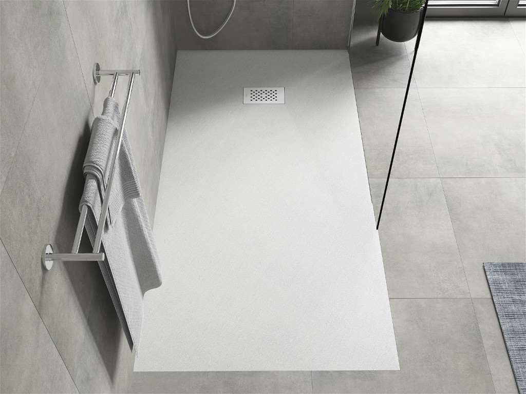 Nabízená sprchová, ultratenká vanička HUGO je harmonií kvality, funkčnosti a estetiky. Sprchovou vaničku lze položit na podlahu, zapustit do podlahy, a pokud je to nutné i libovolně řezat. Sprchová vanička je vyrobena z kompozitního materiálu SMC, který je mimořádně odolný proti vlhkosti, mechanickému poškození a čisticím prostředkům, což se promítá do mimořádné odolnosti, lehkosti a elegance výrobku. Kompozitní povlak SMC, který imituje kámen, díky svým vlastnostem nereaguje na změny teplot, takže použití je příjemné. Nízký profil sprchové vaničky dokonale zapadá do moderních design trendů a umožňuje instalaci v rovině s podlahou, čímž eliminuje jakékoli překážky při každodenním používání sprchy. Toto řešení zaručuje nejen pohodlí, ale také snadné čištění.