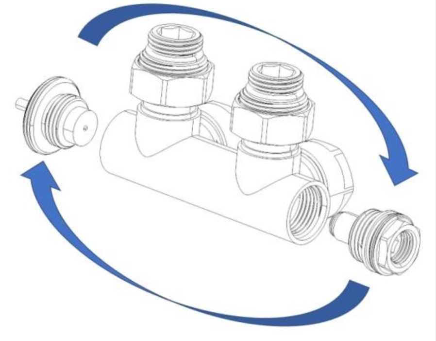 Nelze použít pro přímé napojení ze země. Přívod je vždy na straně termostatické hlavice.