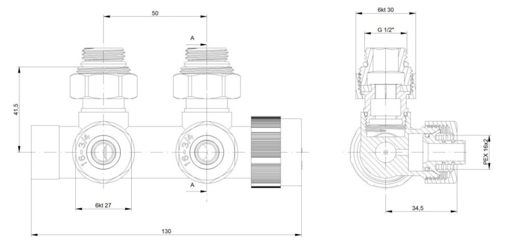 Středová oboustranná (levá i pravá) termostatická sada HYBRID vč. krycí rozety a 2 krycích trubiček (mosaz) je určena pro připojení radiátorů na rozvody TUV s vývodem ze zdi s roztečí 50mm.