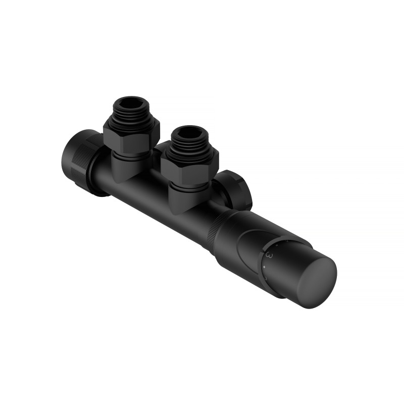 Středová oboustranná (levá i pravá) termostatická sada HYBRID vč. krycí rozety a 2 krycích trubiček (plast) je určena pro připojení radiátorů na rozvody TUV s vývodem ze zdi s roztečí 50mm.
