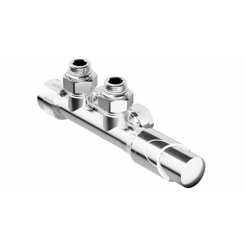 Středová oboustranná (levá i pravá) termostatická sada HYBRID vč. krycí rozety a 2 krycích trubiček (plast) je určena pro připojení radiátorů na rozvody TUV s vývodem ze zdi s roztečí 50mm. Nelze použít pro přímé napojení ze země. Přívod je vždy na … (celý popis)