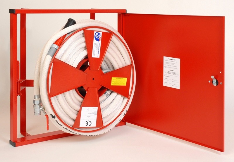 Rám z uzavřených profilů na kterém je připevněno otočné rameno s navijákem a plná dvířka. Na rám jsou přivařeny dva ploché držáky s otvory pro ukotvení do zdiva či sádrokartonu pomocí hmoždinek a montážní pěny. Do středu navijáku je přivedena tlaková voda, která umožňuje okamžité použití systému.