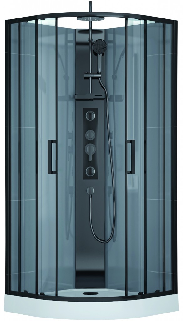 Černý hydromasážní sprchový kout Wega 90 je moderní a funkční řešení, které se hodí do menších i větších koupelen. Jeho kompaktní rozměry (90 x 90 x 215 cm) a půlkruhový tvar umožňují snadné přizpůsobení různým prostorům. Kout je vyroben z tvrzeného skla o tloušťce 4 mm s ochrannou vrstvou Kerra Protect, která snižuje usazování vodního kamene a usnadňuje čištění.