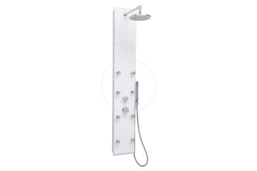 Efektní skleněný pro luxusní vzhled a nekompromisní kvalitu. Tři zóny kruhově rozmístěných trysek, hlavová sprcha a funkce vodopád v horní části panelu zajistí nezapomenutelné zážitky.