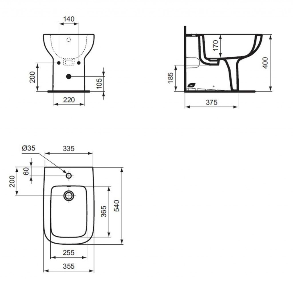 - 1 otvor pro bidetovou baterii