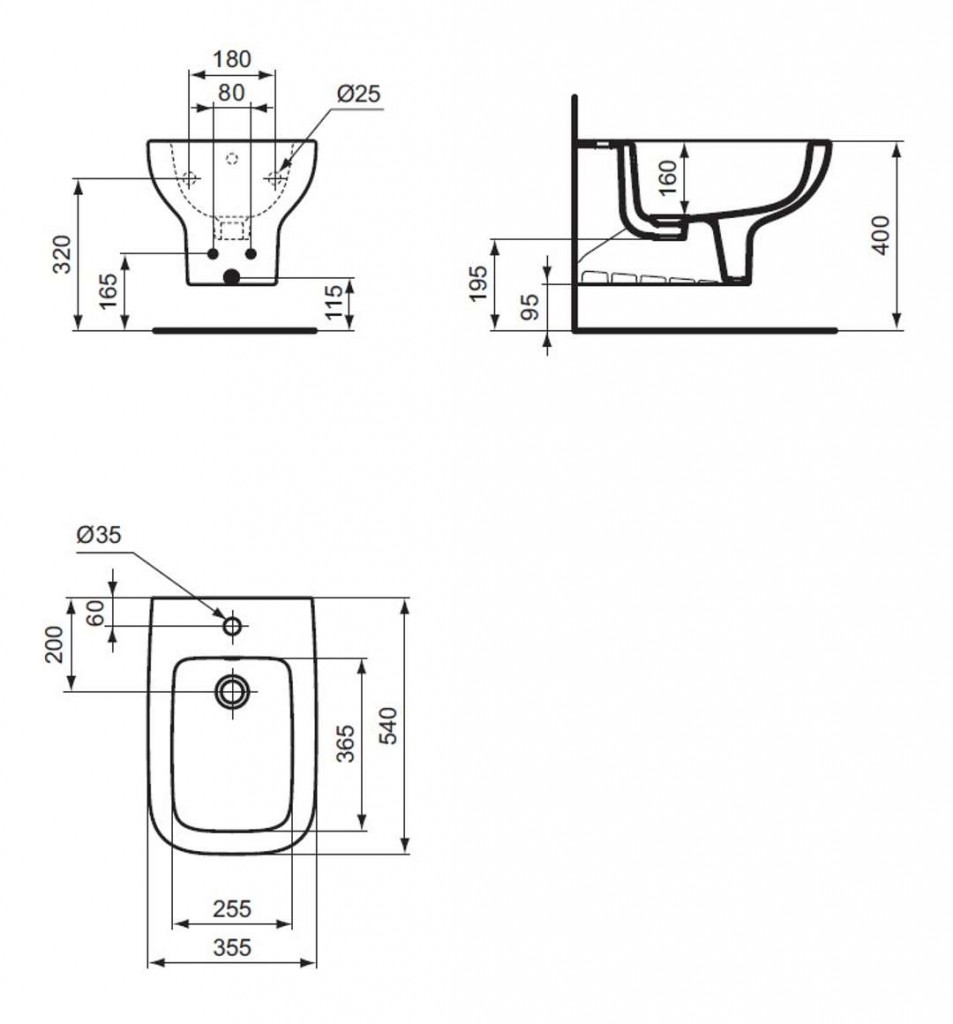 - 1 otvor pro bidetovou baterii