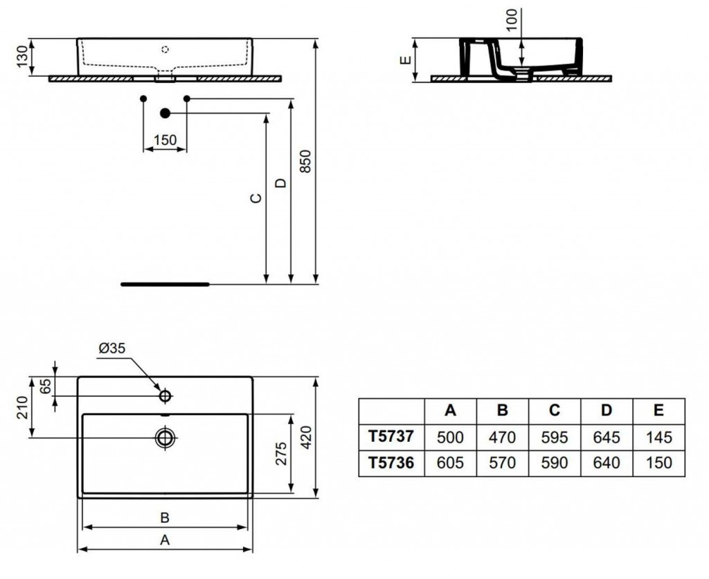 Umyvadlo k postavení na desku nebo skříňku