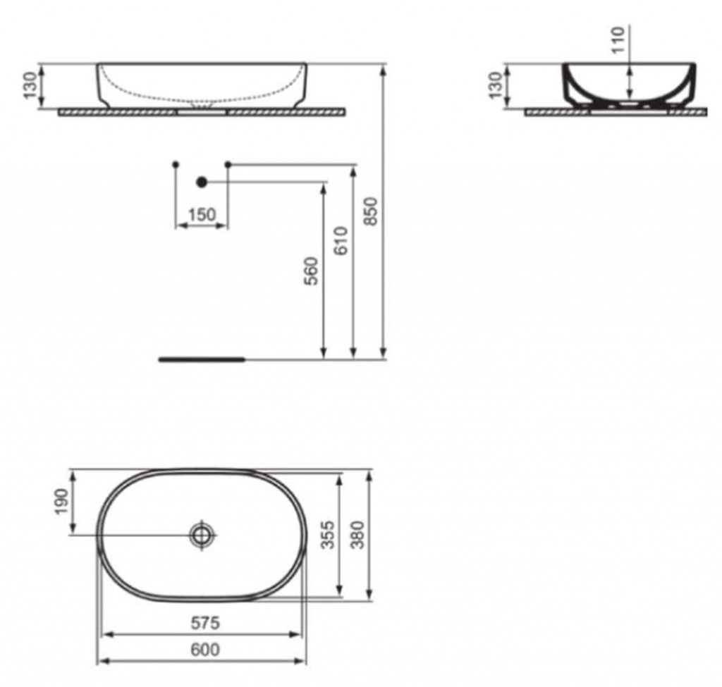 Umyvadlo k postavení na desku