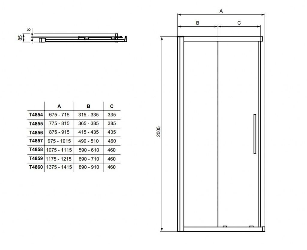 Lze kombinovat s pevnou stěnou i.Life, ale pouze jako třetí stranu koutu. Pro sestavení sprchového koutu je nutné objednat 2 ks.