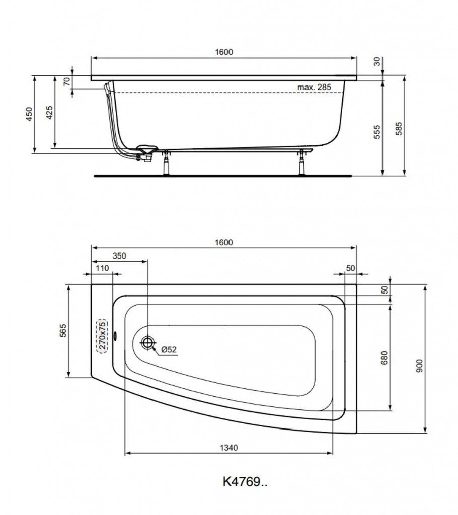 Nožičky, odtoková a přepadová souprava nejsou součástí dodávky.
