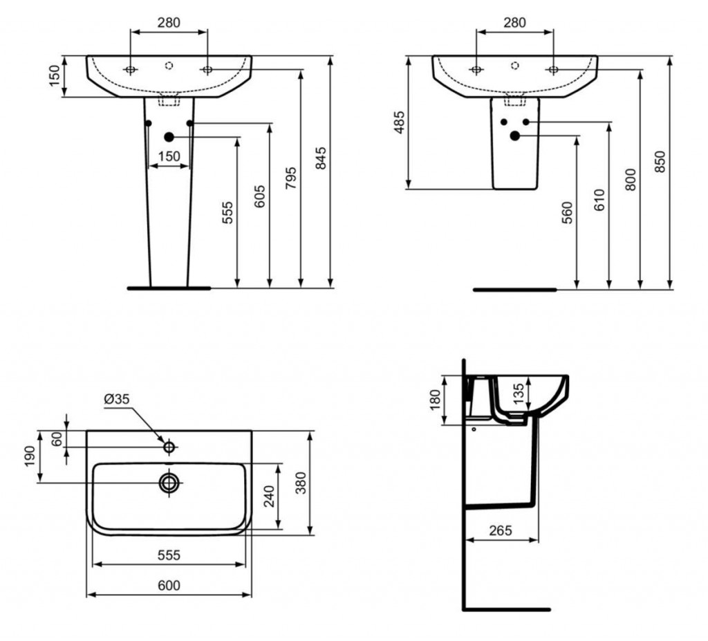 - výška umyvadla 180 mm