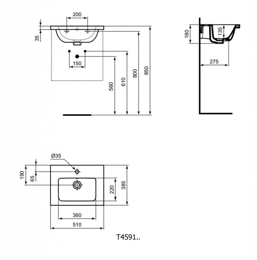 Umyvadlo vhodné pro kombinaci se skříňkou pod umyvadlo nebo sloupem / polosloupem