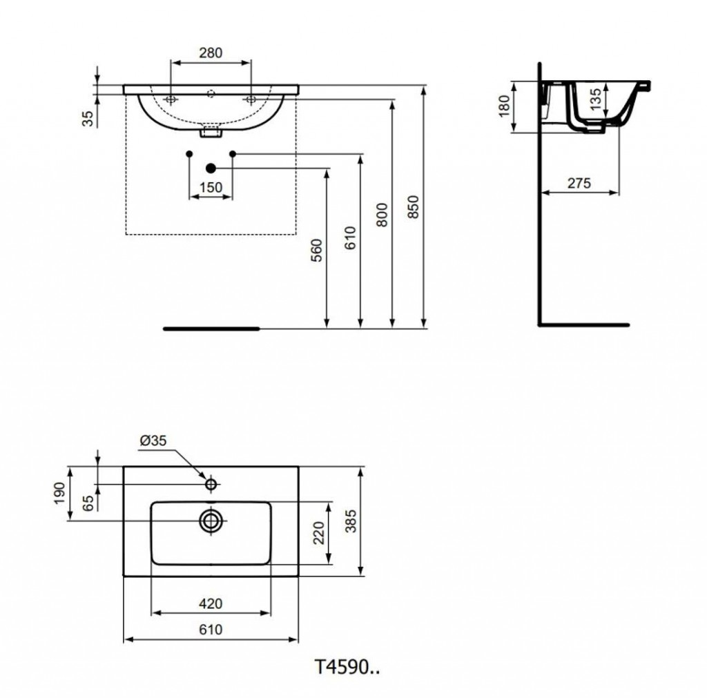 Umyvadlo vhodné pro kombinaci se skříňkou pod umyvadlo nebo sloupem / polosloupem