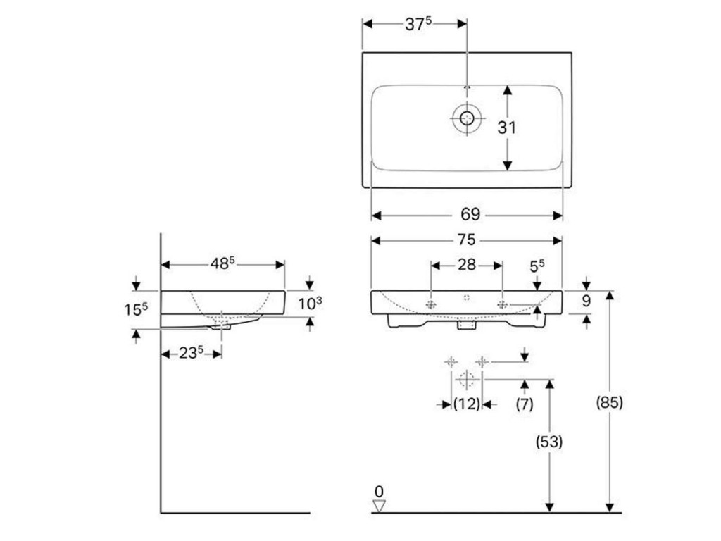 Umyvadlo bez otvoru pro baterii, s přepadem