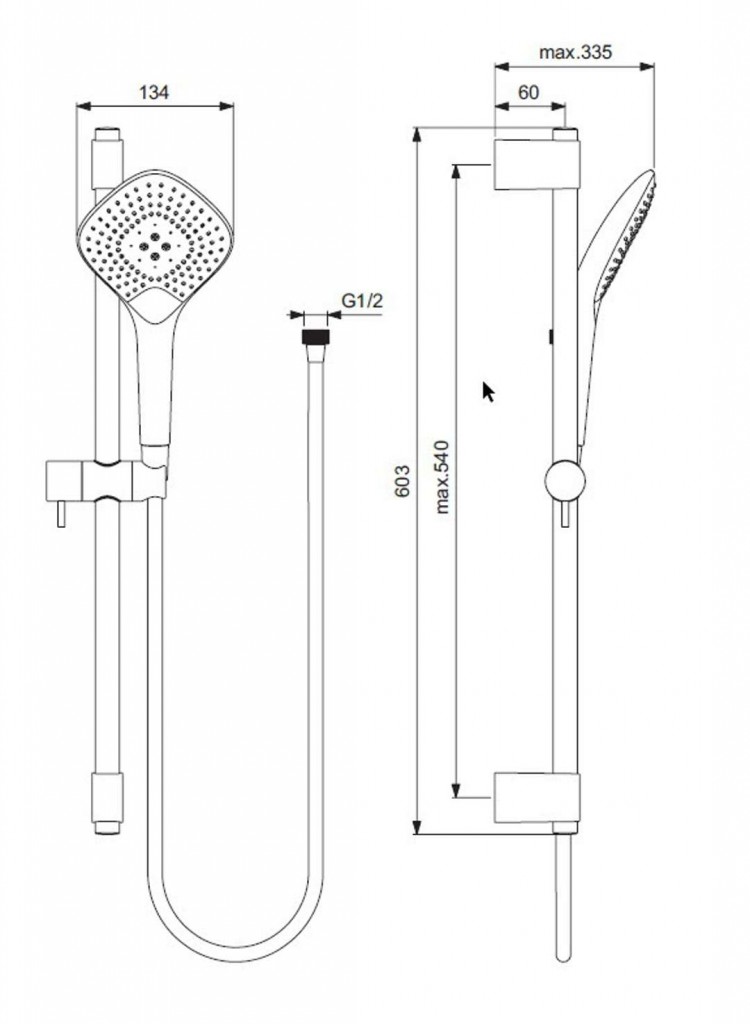 - sprchová tyč s posuvným kovovým držákem sprchy