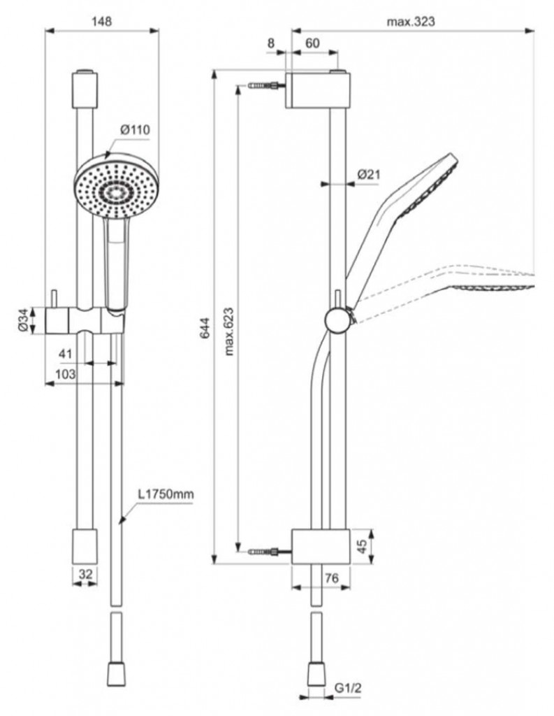 nastavitelnou nástěnnou tyč s držákem sprchy