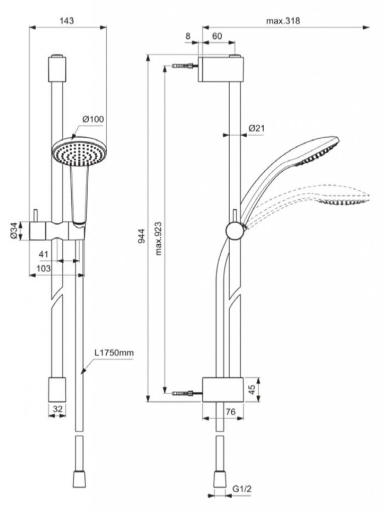 - celková výška: 944 mm