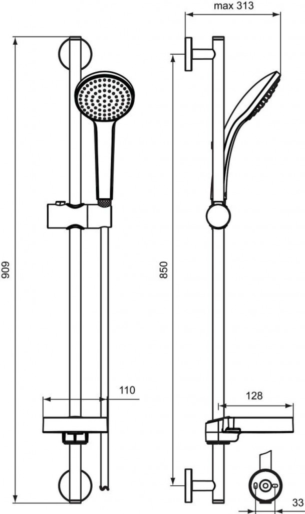 - sprchová tyč 900 mm s posuvným držákem sprchy