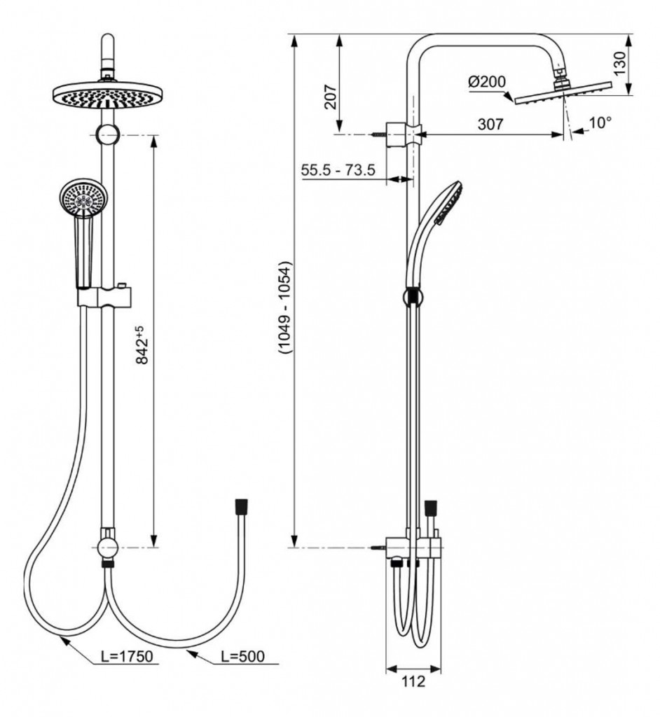 sprchovou tyč, keramický dvoucestný přepínač a držák sprchy