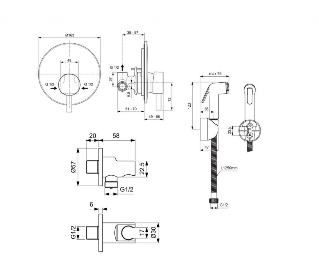 Podomítková bidetová baterie se sprškou