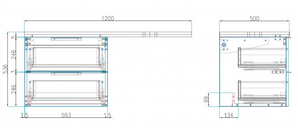 - pojezdy zásuvek s pomalým dojezdem a systémem automatického dovření
