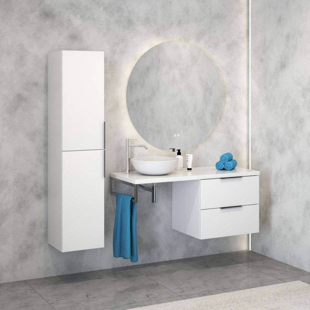 - přední i boční strana skříňky lesklá bílá