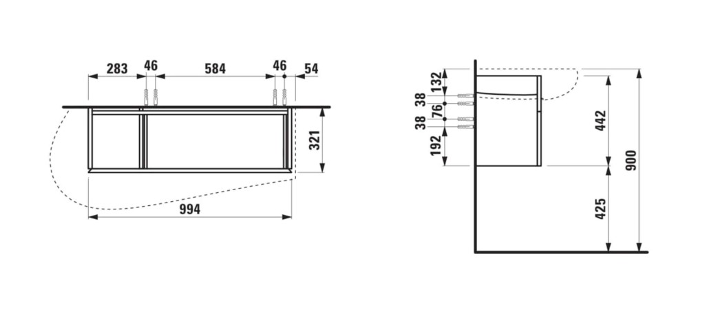 - S výřezem pro sifon vlevo