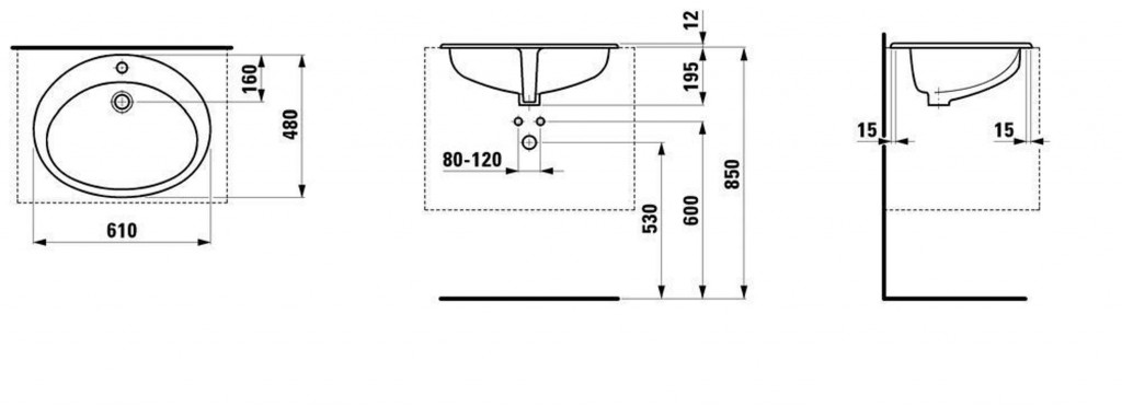 Zápustné umyvadlo s jedním otvorem pro baterii