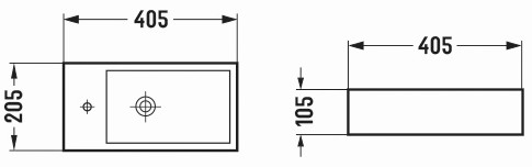 Samotné umyvadlo je dlouhé 41 cm a hluboké 21 cm. Umyvadlo nemá bezpečnostní přepad, otvor pro baterii má na levé straně umyvadla.