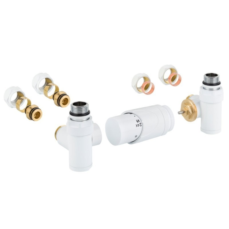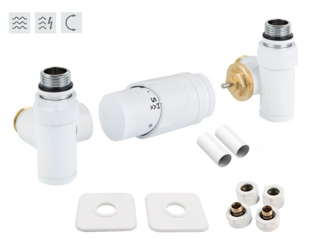 Rohová oboustranná (levá i pravá) termostatická sada INTEGRATO vč. krycí rozety a 2 krycích trubiček (mosaz) je určena pro připojení radiátorů na rozvody TUV s vývodem ze zdi s různou roztečí (krajní připojení). Sada umožňuje přímé osazení elektrické topné tyče.