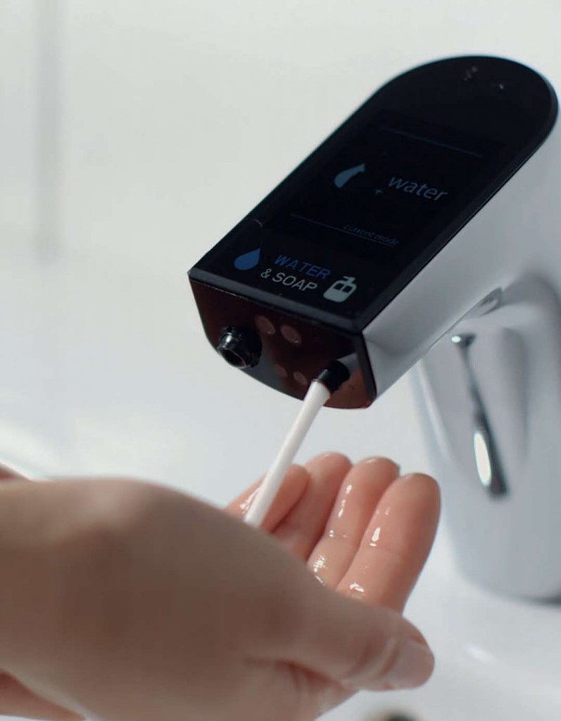 Bezdotyková umyvadlová baterie s integrovaným dávkovačem tekutého mýdla - zkrácená doba mytí a nižší náklady