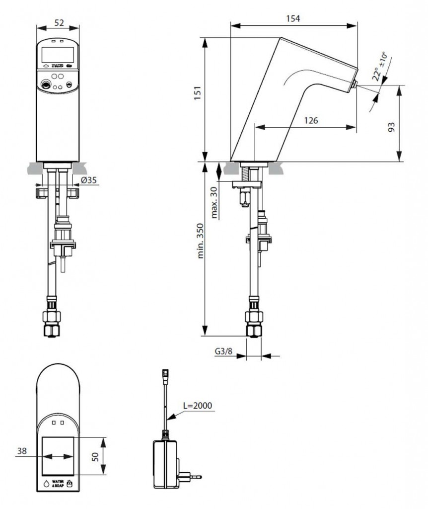 - lze si upravit parametry, jako je nastavení mýdla a cyklus mytí rukou, aby vyhovovaly měnícím se potřebám, a také řídit frekvenci automatického proplachování