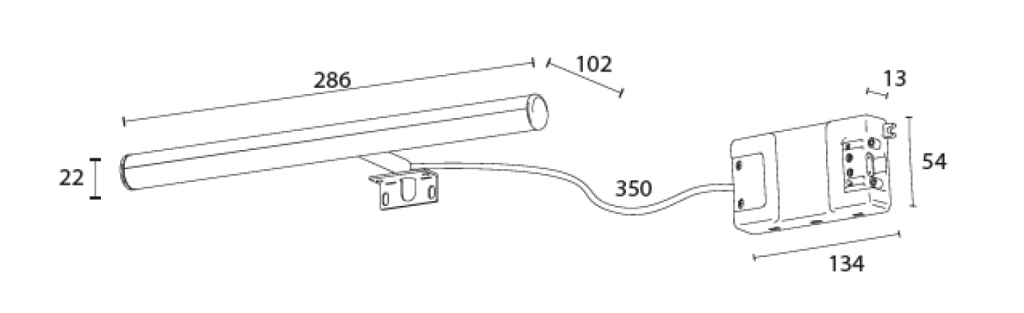 - součástí balení je tenký 220 V AC transformátor (AED06-700IIP44), který se instaluje za zrcadlo