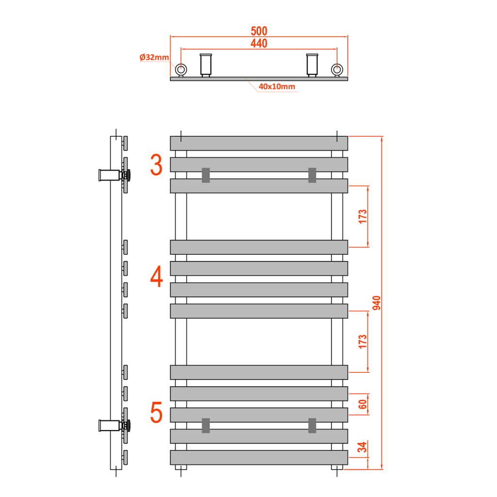 Topení s bočním připojenímKombinované připojení umožňuje ohřívat těleso jak centrálním systémem vytápění, tak využít pro samostatný ohřev elektrickou topnou tyč mimo topnou sezonu. Topnou tyč doporučujeme se stejným nebo podobným výkonem dle specifikace daného topného tělesa.
