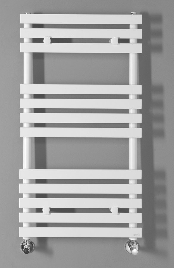 Topení s jednobodovým připojenímHranatý design tvořený obdélníkovými profily, které dokonale splynou se svislými kolektory z trubek s kruhovým profilem.