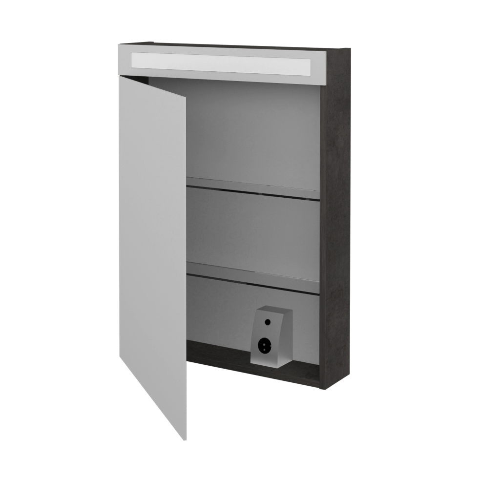 Zrcadlová skříňka AIR GAOE 60 je vyrobena v jednodveřovém provedení s oboustranným zrcadlem, u kterého si můžete zvolit, zda chcete pravo nebo levostranné otevírání. Zrcadlo je ke korpusu připevněno pomocí značkových pantů Grass. Jejich přichycení k zrcadlovině je možné díky patentem chráněné a v Dřevojasu zkonstruované liště.