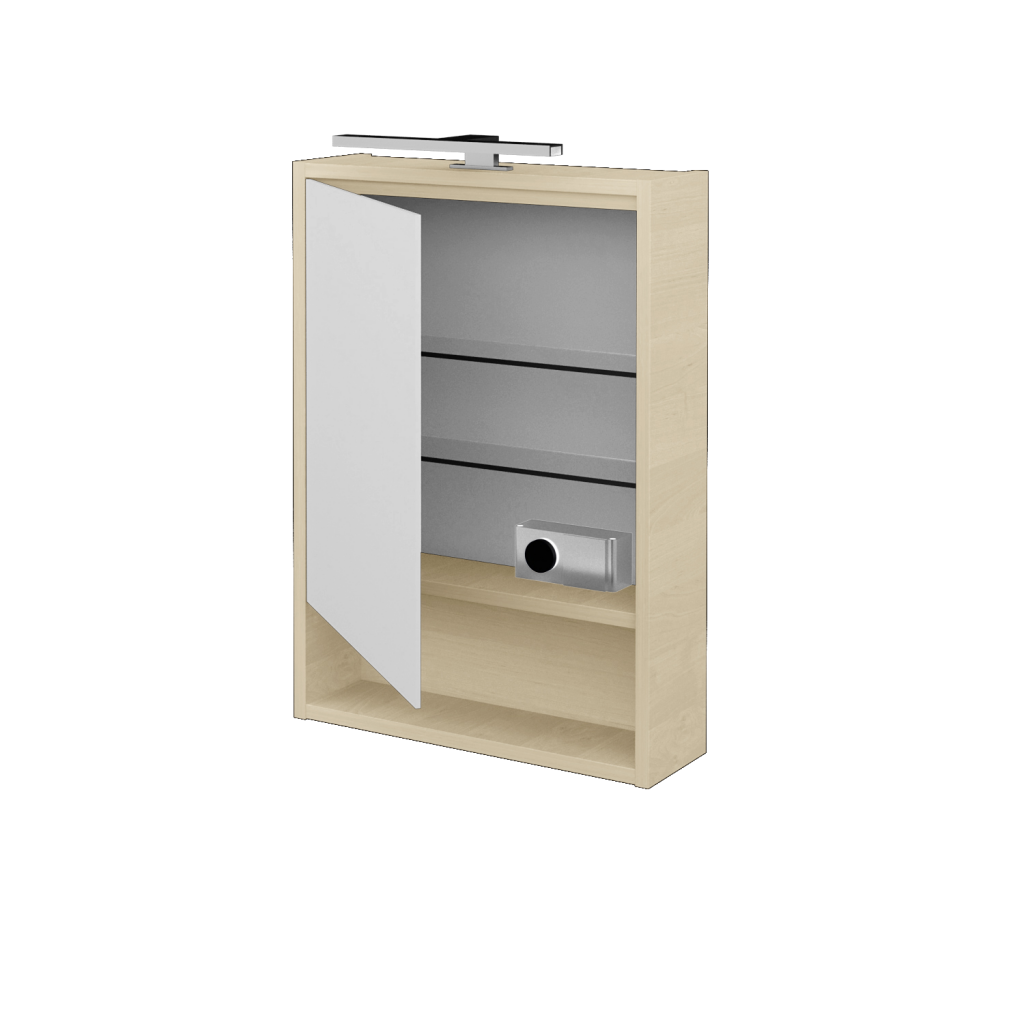 - Maximální zrcadlová plocha díky oboustrannému zrcadlu na dvířkách.