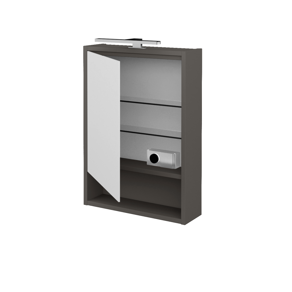 ParametryGalerka FOCUS GAOE 50 je konstruována jako jednodveřová s oboustranným zrcadlem. Vnitřní prostor galerky je rozdělen pomocí 2 skleněných a nastavitelných polic, díky čemuž vzniká praktický prostor pro uložení všech doplňků, jako je kosmetika, hygienické potřeby atd. Velkou výhodou galerky je el. zásuvka 230 V (uvnitř galerky) a vypínač pro (5 W, teplota 4 000 K). Galerka splňuje krytí IP 44.