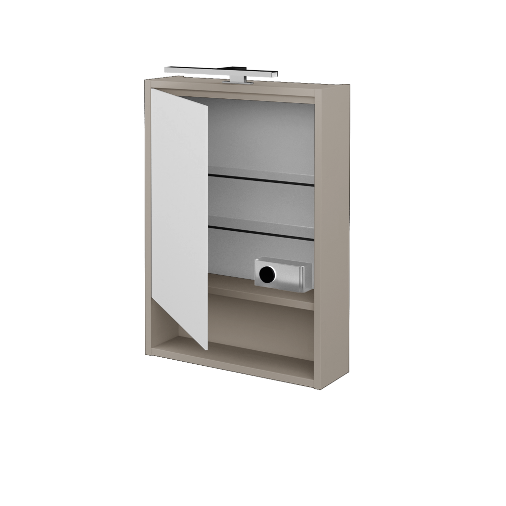 ParametryGalerka FOCUS GAOE 50 je konstruována jako jednodveřová s oboustranným zrcadlem. Vnitřní prostor galerky je rozdělen pomocí 2 skleněných a nastavitelných polic, díky čemuž vzniká praktický prostor pro uložení všech doplňků, jako je kosmetika, hygienické potřeby atd. Velkou výhodou galerky je el. zásuvka 230 V (uvnitř galerky) a vypínač pro (5 W, teplota 4 000 K). Galerka splňuje krytí IP 44.