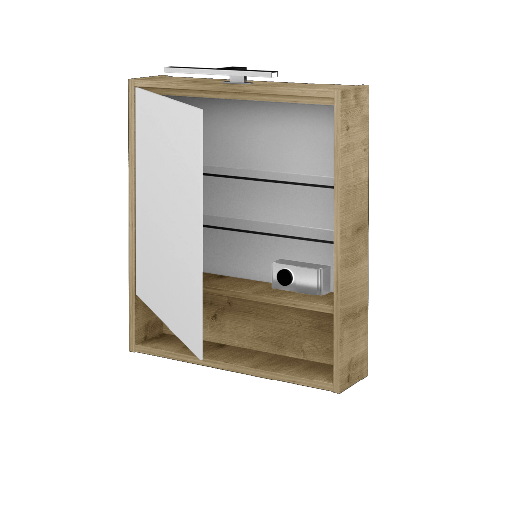 Parametry galerkyGalerka FOCUS GAOE 60 je konstruována jako jednodveřová s oboustranným zrcadlem. Vnitřní prostor galerky je rozdělen pomocí 2 skleněných a nastavitelných polic, díky čemuž vzniká praktický prostor pro uložení všech doplňků, jako je kosmetika, hygienické potřeby atd. Velkou výhodou galerky je el. zásuvka 230 V (uvnitř galerky) a vypínač pro (5 W, teplota 4 000 K). Galerka splňuje krytí IP 44.