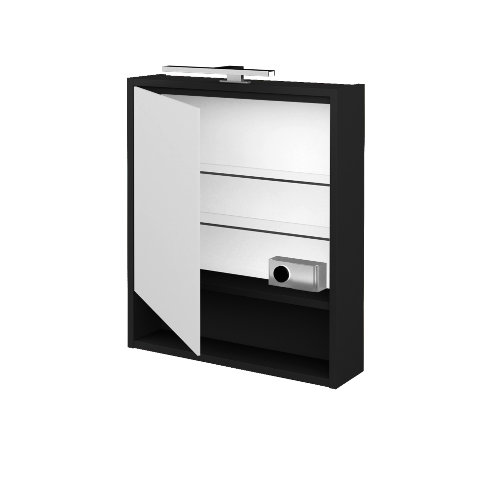 • Maximální zrcadlová plocha díky oboustrannému zrcadlu na dvířkách.