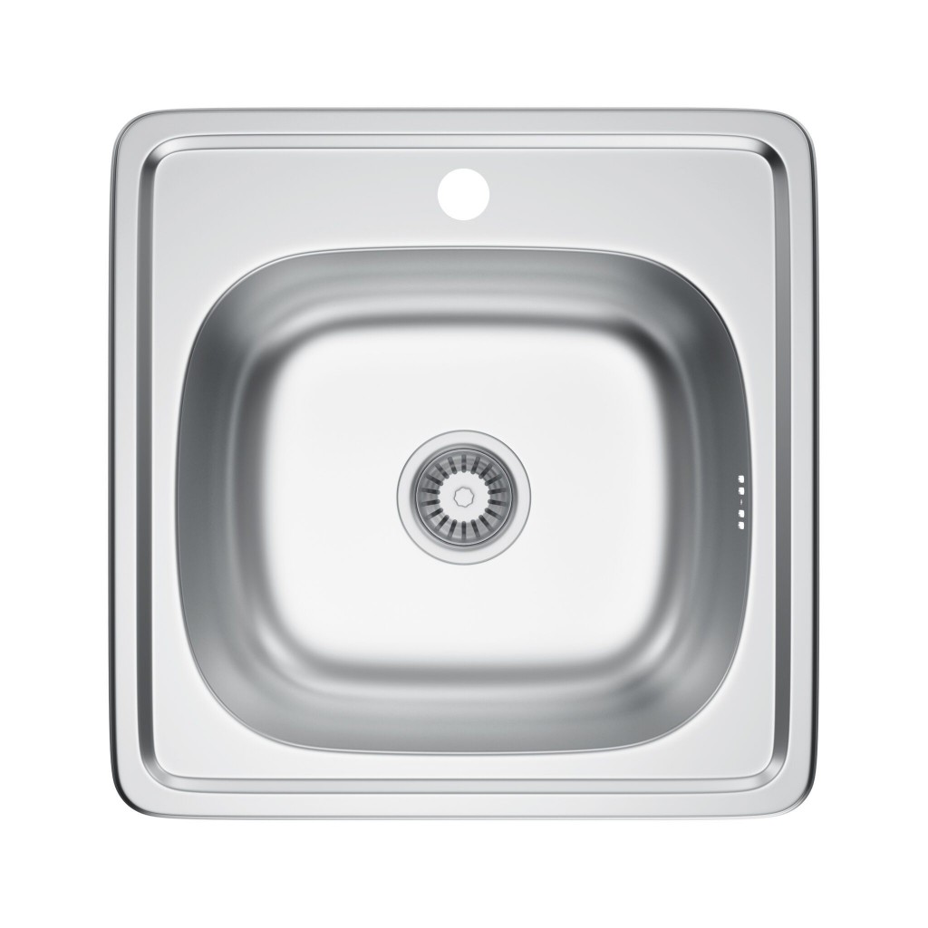 Jednokomorový nerezový dřez 48×48 cm je praktickým řešením pro menší kuchyně nebo jako doplňkový dřez.