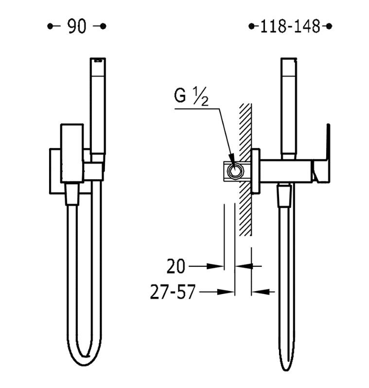- sprchová mosazná baterie s omezovacím hrdlem 5 l/m